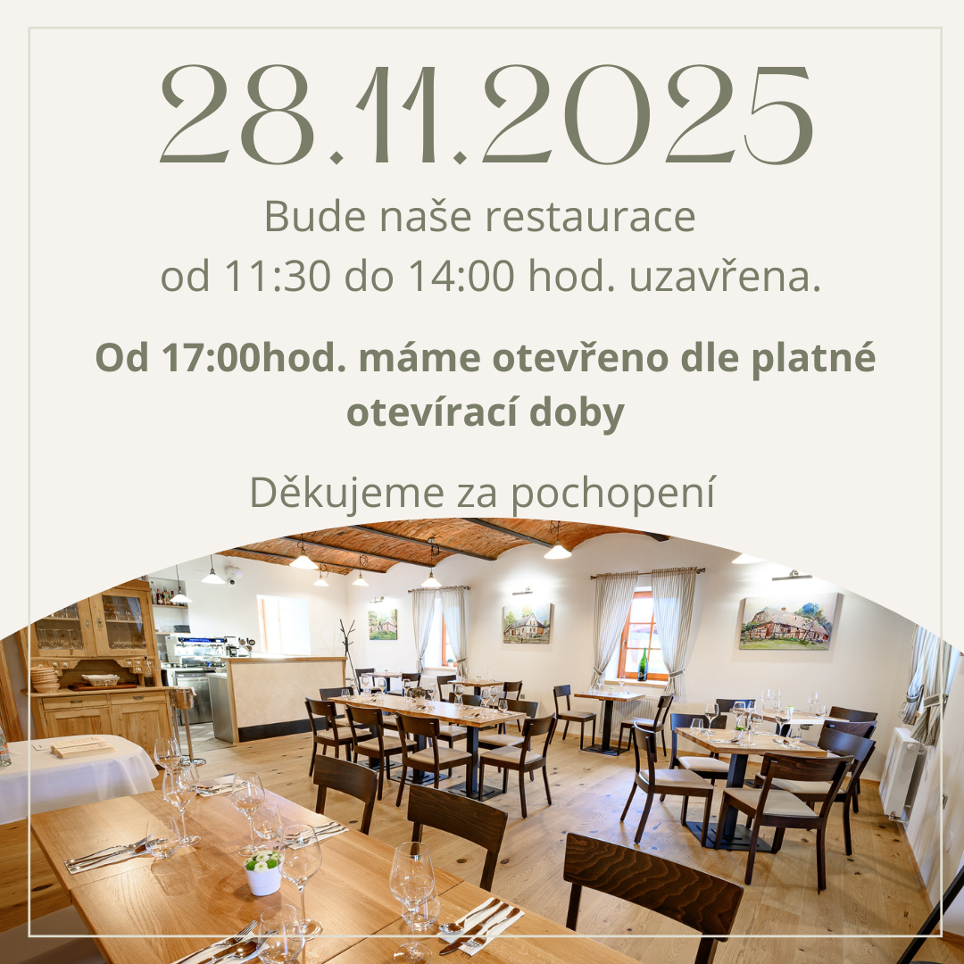 V sobotu 20.9.2025 budeme mít restauraci přes obědy uzavřenou. Děkujeme za pochopení :-) read more